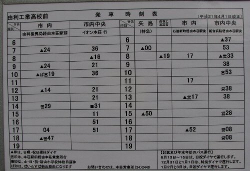 | 市内中央線 由利工業高校前バス停時刻表 |