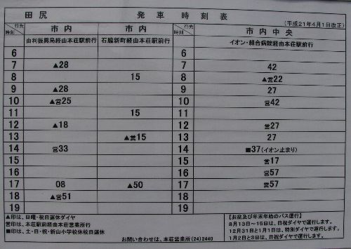 | 市内線 田尻バス停時刻表 |