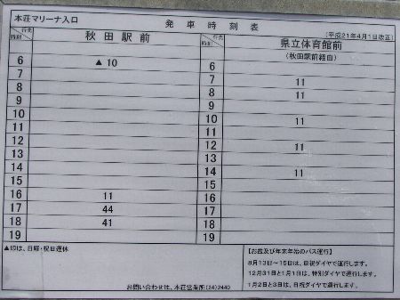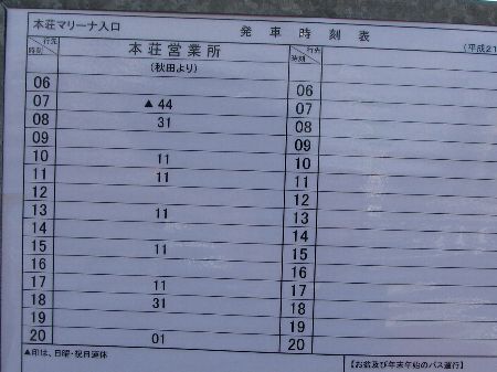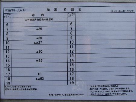 | 市内線 本荘マリーナ入口バス停時刻表 |