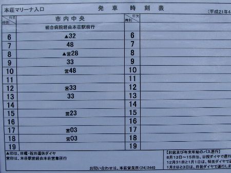 | 市内中央線 本荘マリーナ入口バス停時刻表 |