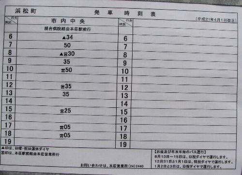 | 市内中央線 浜松町バス停時刻表 |