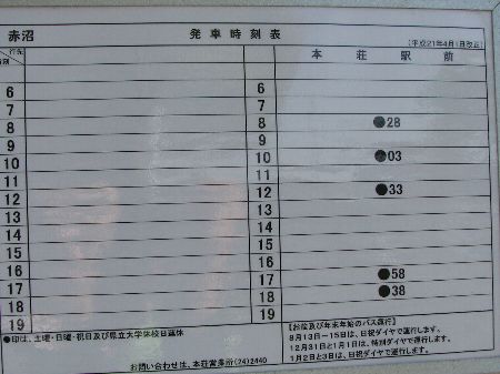 | 県立大学線 赤沼バス停時刻表 |