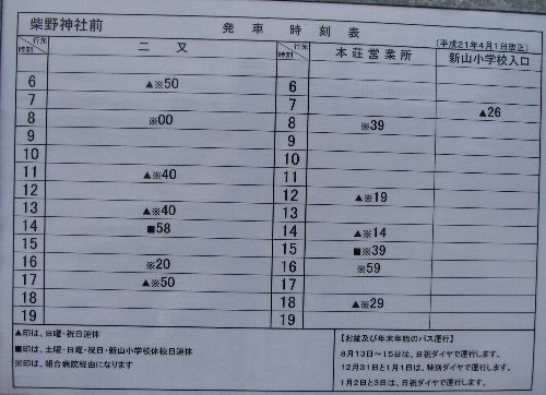 | 本荘赤田線 柴野神社前バス停時刻表 |