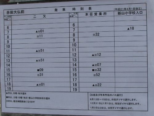 | 本荘赤田線 赤田大仏前バス停時刻表 |
