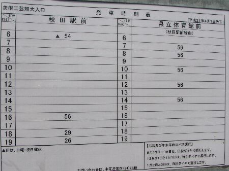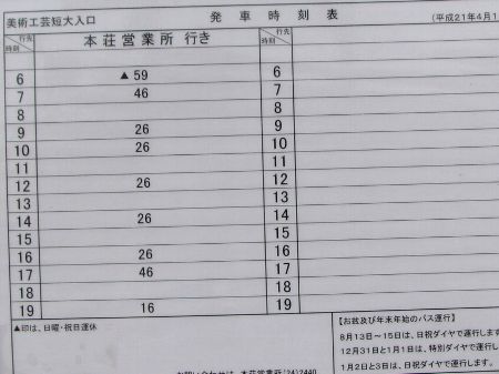 羽後交通 美術工芸短大入口 時刻表