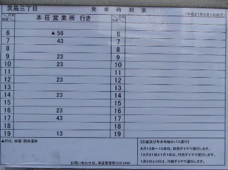 ˆï“‡ŽO’š–ÚƒoƒX’⎞•\