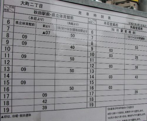 [急行]秋田線 秋田駅経由県立体育館方面時刻表