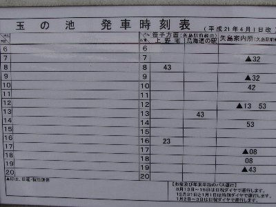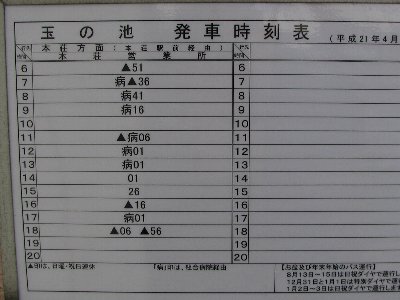 | 玉の池バス停時刻表 |