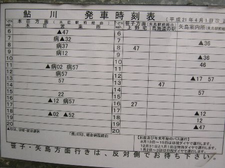 | 鮎川バス停時刻表 |