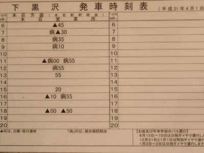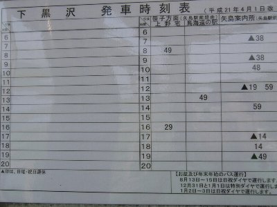 | 下黒沢バス停時刻表 |