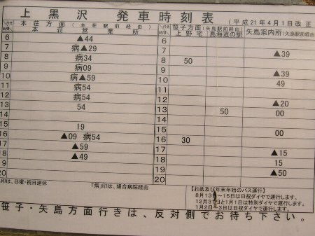 | 上黒沢バス停時刻表 |