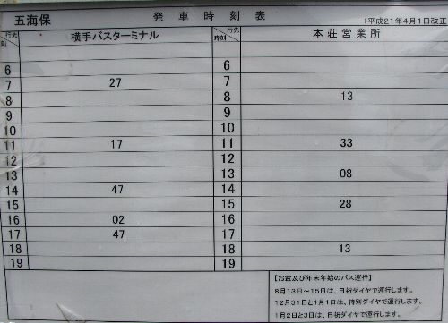 五海保バス停時刻表