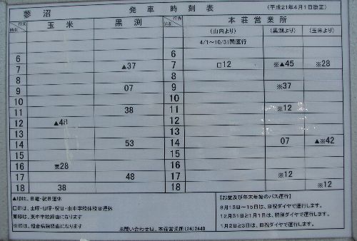 | 蓼沼バス停時刻表 |