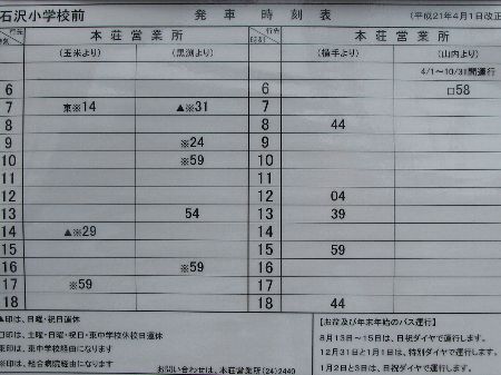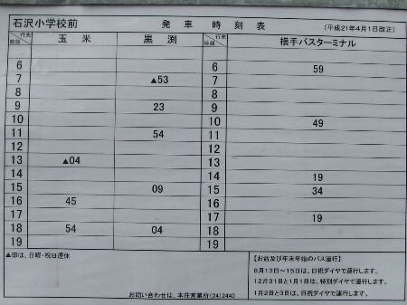 | 石沢小学校前バス停時刻表 |