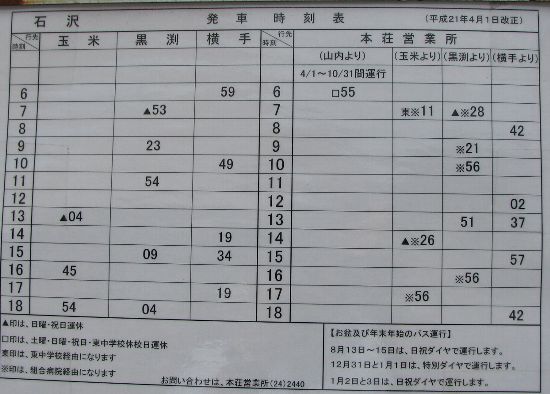 | 石沢バス停時刻表 |