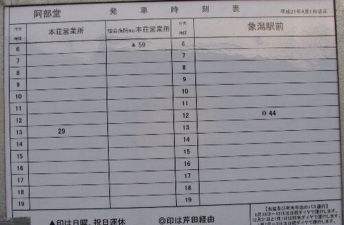 阿部堂バス停時刻表