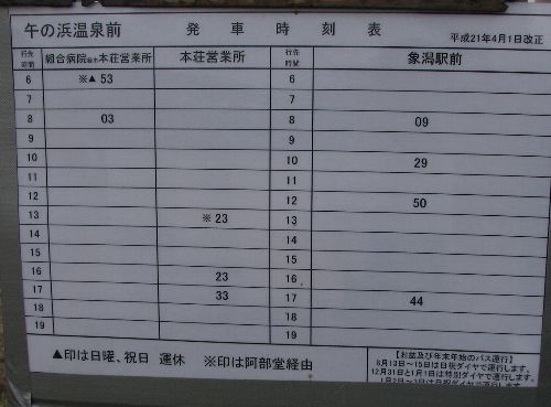 | 本荘象潟線 牛ノ浜温泉前バス停時刻表 |
